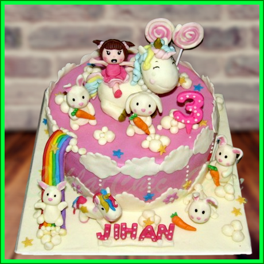 Birthday Cake dengan tema Unicorn & Rabbit, model tersebut mulai ukuran 22 cm , daftar harga kue ulang tahun https://coklatchiccake.com/daftar-harga-