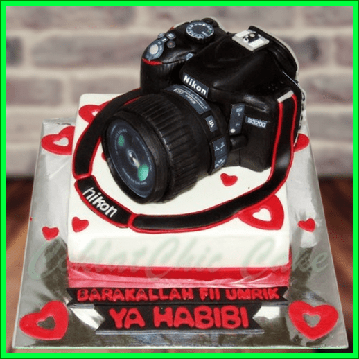 Birthday Cake dengan tema Nikon, model tersebut mulai ukuran cake bawah 18 cm dan camera real size , daftar harga kue ulang tahun https://coklatchiccake.com/daftar-harga-2