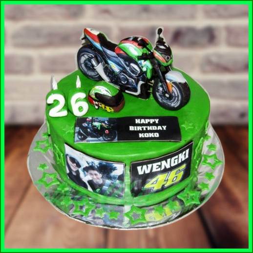 Birthday Cake dengan tema motor Yamaha Valentino Rossi, model tersebut mulai ukuran 24 cm, daftar harga kue ulang tahun https://coklatchiccake.com/daftar-harga-2