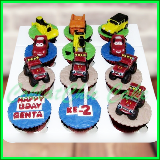Birthday Cupcake dengan tema mobil dan alat berat, model tersebut mulai ukuran 15 cm, daftar harga kue ulang tahun https://coklatchiccake.com/daftar-harga-2
