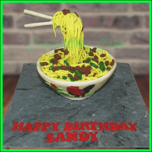 Birthday Cake dengan tema Mie Ayam, m odel tersebut mulai ukuran 15 cm , daftar harga kue ulang tahun https://coklatchiccake.com/daftar-harga-2