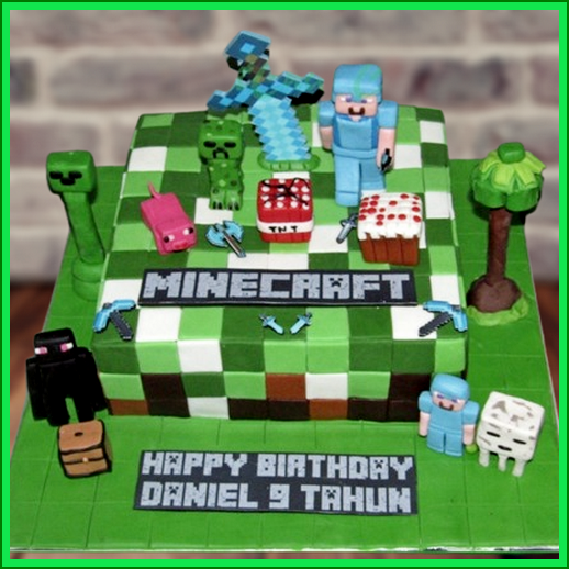 Birthday Cake dengan tema Minecraft , model tersebut mulai ukuran 24 cm , daftar harga kue ulang tahun https://coklatchiccake.com/daftar-harga-2