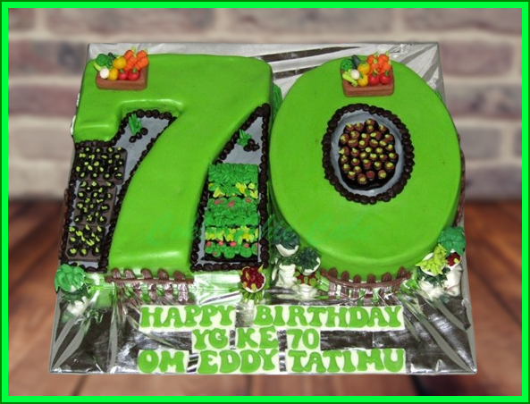 Birthday Cake angka 70 dengan tema Agroponic , model tersebut mulai ukuran 22×33 cm , daftar harga kue ulang tahun https://coklatchiccake.com/daftar-harga-2