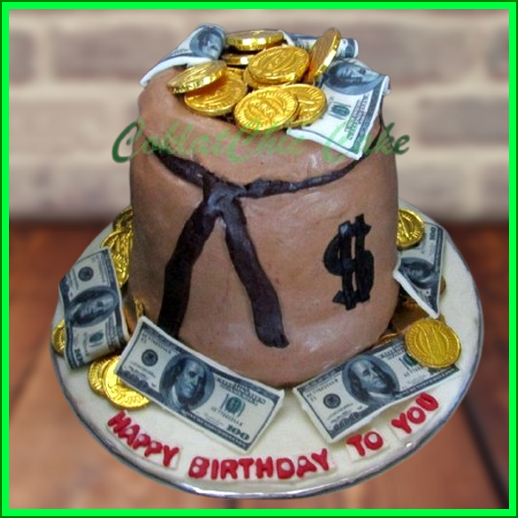 Birthday Cake dengan tema Money Bag , model tersebut mulai ukuran 12 cm tinggi , daftar harga kue ulang tahun https://coklatchiccake.com/daftar-harga-2