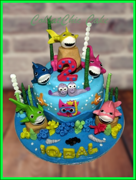 Birthday Cake dengan tema Baby Shark , model tersebut mulai ukuran 15 cm , daftar harga kue ulang tahun https://coklatchiccake.com/daftar-harga-2