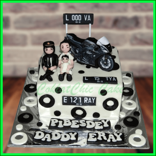 Birthday Cake family dengan tema Motor Kawasaki Ninja , model tersebut mulai ukuran 15 cm , daftar harga kue ulang tahun https://coklatchiccake.com/daftar-harga-2