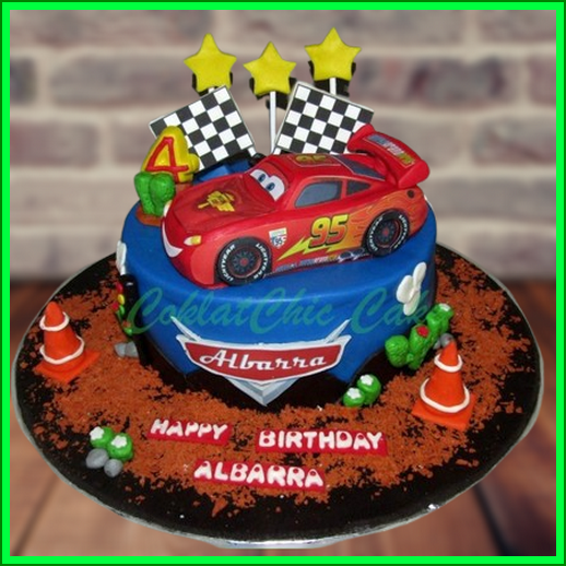 Birthday Cake dengan tema Lightning McQueen Disney Cars, model tersebut mulai ukuran 20 cm , daftar harga kue ulang tahun https://coklatchiccake.com/daftar-harga-2