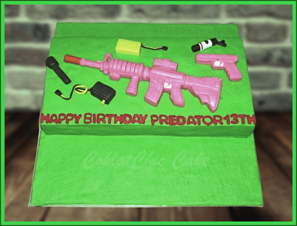 Birthday Cake dengan tema airsoft Gun , model tersebut mulai ukuran 30 cm , daftar harga kue ulang tahun https://coklatchiccake.com/daftar-harga-2