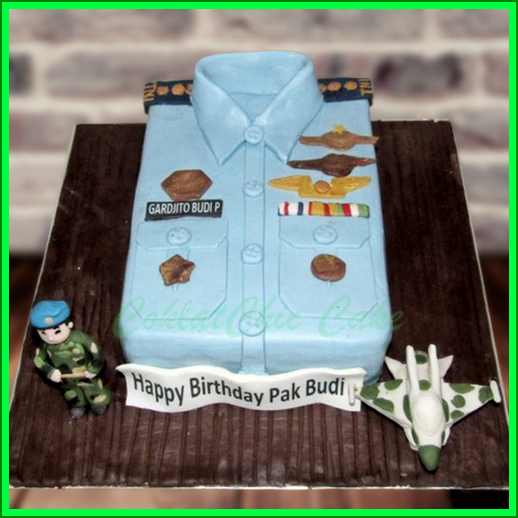 Birthday Cake dengan tema Baju Tentara , model tersebut mulai ukuran 15 cm , daftar harga kue ulang tahun https://coklatchiccake.com/daftar-harga-2