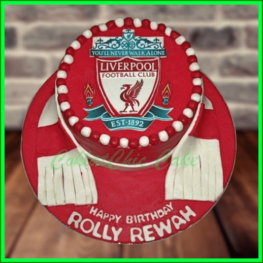 Birthday Cake dengan tema Club Sepak Bola Liverpool , model tersebut mulai ukuran 18 cm , daftar harga kue ulang tahun https://coklatchiccake.com/daftar-harga-2