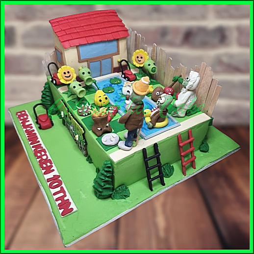 Birthday Cake dengan tema Plants vs Zombie, model tersebut mulai ukuran 20×30 cm, daftar harga kue ulang tahun https://coklatchiccake.com/daftar-harga-2