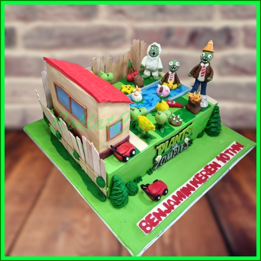 Birthday Cake dengan tema Plants vs Zombie, model tersebut mulai ukuran 20×30 cm, daftar harga kue ulang tahun https://coklatchiccake.com/daftar-harga-2