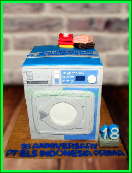 Anniversary Cake dengan tema mesin cuci, model tersebut mulai ukuran 18 cm tinggi , daftar harga kue ulang tahun https://coklatchiccake.com/daftar-harga-2