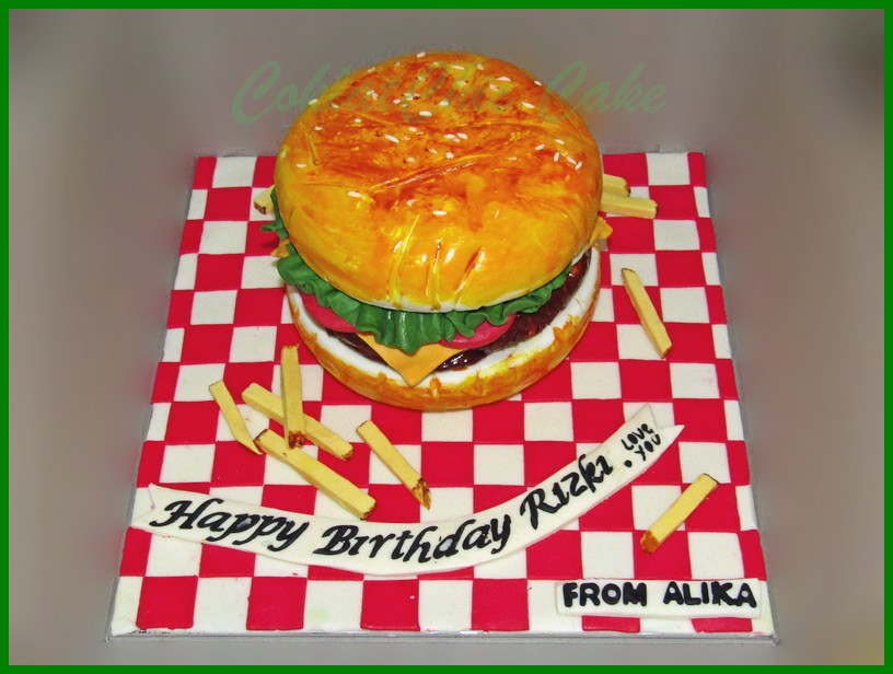 Birthday Cake dengan tema burger, model tersebut mulai ukuran 15 cm , daftar harga kue ulang tahun https://coklatchiccake.com/daftar-harga-2
