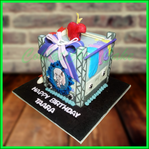 Terbuat dari cake yang dipahat, no styrofoam. Pelapis terbuat coklat bukan fondant atau sugar icing.
