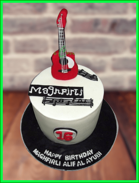 Birthday Cake dengan tema Gitar , model tersebut mulai ukuran 15 cm , daftar harga kue ulang tahun https://coklatchiccake.com/daftar-harga-2