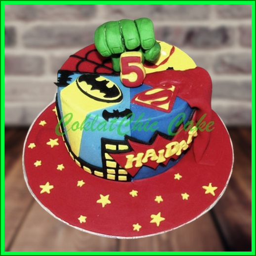 Birthday Cake dengan tema Superhero , model tersebut mulai ukuran 15 cm , daftar harga kue ulang tahun https://coklatchiccake.com/daftar-harga-2