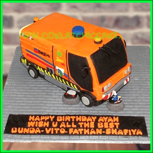 Birthday Cake dengan tema Truk Penyapu, model ini ukuran 18 cm, daftar harga kue ulang tahun https://coklatchiccake.com/daftar-harga-2