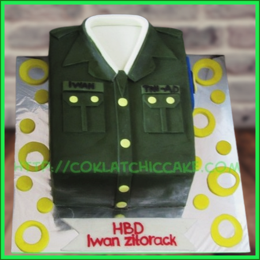 Birthday Cake dengan tema baju tentara , model ini mulai ukuran 15 cm, daftar harga kue ulang tahun https://coklatchiccake.com/daftar-harga-2