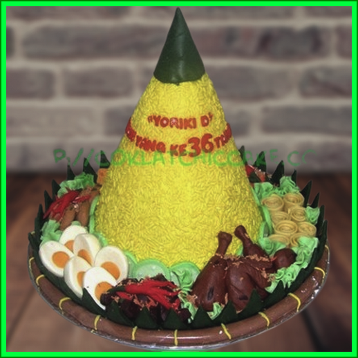 Birthday Cake dengan tema Tumpeng, model tersebut mulai ukuran 20 cm, daftar harga kue ulang tahun https://coklatchiccake.com/daftar-harga-2