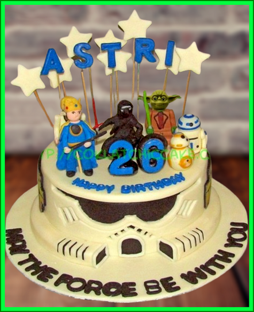 Birthday Cake dengan tema StarWars, model tersebut mulai ukuran 15 cm, daftar harga kue ulang tahun https://coklatchiccake.com/daftar-harga-2