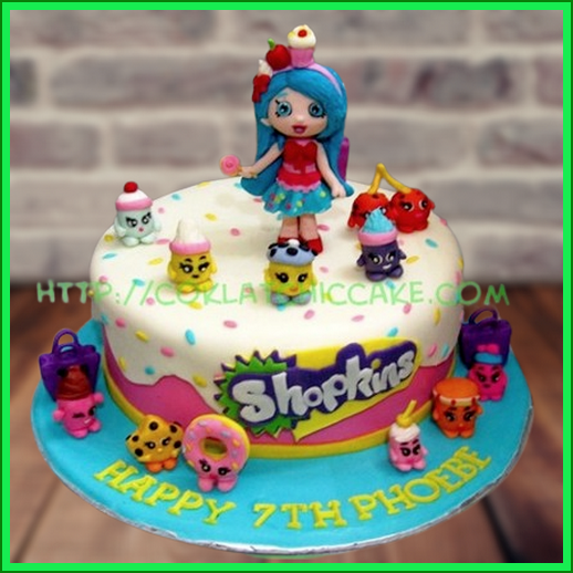 Birthday Cake dengan tema Shopkins, model tersebut mulai ukuran 15 cm, daftar harga kue ulang tahun https://coklatchiccake.com/daftar-harga-2