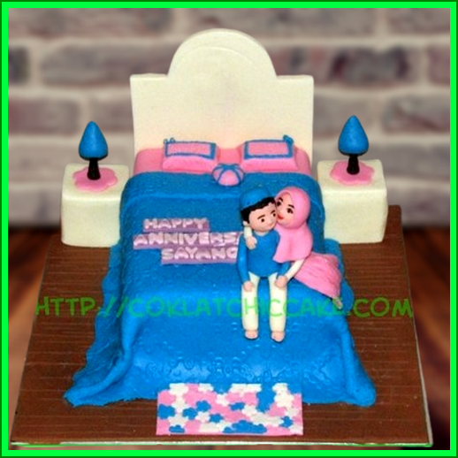 Anniversary Cake dengan tema couple at bedroom, model tersebut mulai ukuran 15 cm, daftar harga kue ulang tahun https://coklatchiccake.com/daftar-harga-2