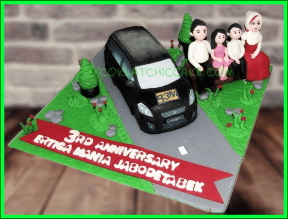 Anniversary Cake dengan tema mobil Ertiga family , model tersebut mulai ukuran 15 cm, daftar harga kue ulang tahun https://coklatchiccake.com/daftar-harga-2