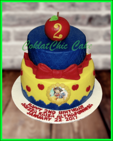 Birthday Cake dengan tema Snow White, model tersebut mulai ukuran 20 cm + 15 cm, daftar harga kue ulang tahun https://coklatchiccake.com/daftar-harga-2