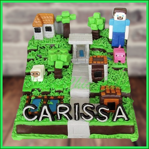 Birthday Cake dengan tema Minecraft, model tersebut mulai ukuran 15 cm, daftar harga kue ulang tahun https://coklatchiccake.com/daftar-harga-2