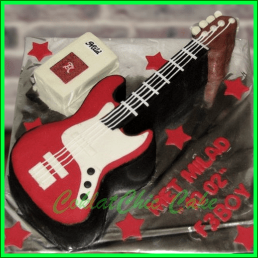 Birthday Cake dengan tema Gitar, model tersebut mulai ukuran 15 cm, daftar harga kue ulang tahun https://coklatchiccake.com/daftar-harga-2