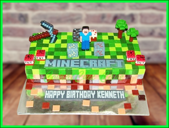 Birthday Cake dengan tema Minecraft, model tersebut mulai ukuran 15×30 cm, daftar harga kue ulang tahun https://coklatchiccake.com/daftar-harga-2