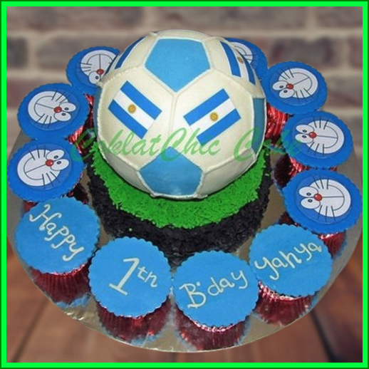Birthday Cake dan cupcake dengan tema Bola dan Doraemon, model tersebut mulai ukuran 15 cm, daftar harga kue ulang tahun https://coklatchiccake.com/daftar-harga-2