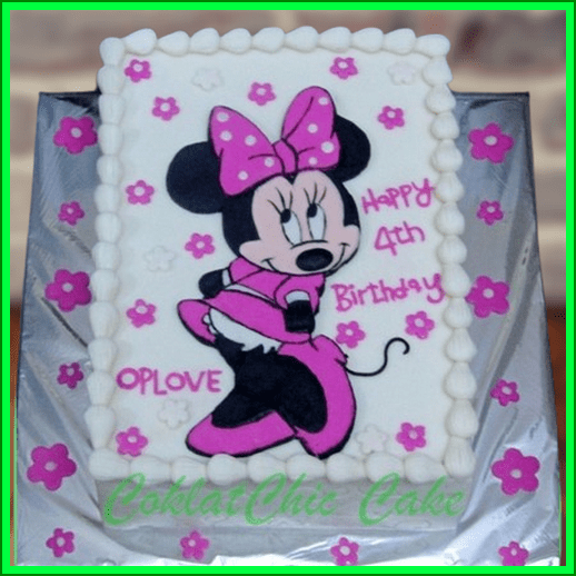 Birthday Cake dengan tema Minnie Mouse, model tersebut mulai ukuran 15×22 cm, daftar harga kue ulang tahun https://coklatchiccake.com/daftar-harga-2