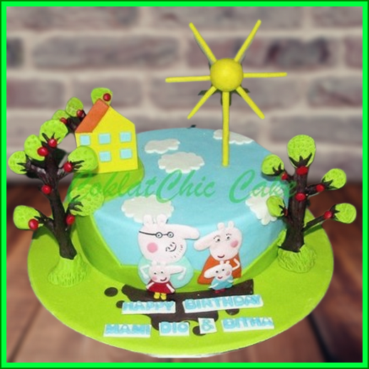 Birthday Cake dengan tema Peppa The Pig, model tersebut mulai ukuran 20 cm, daftar harga kue ulang tahun https://coklatchiccake.com/daftar-harga-2