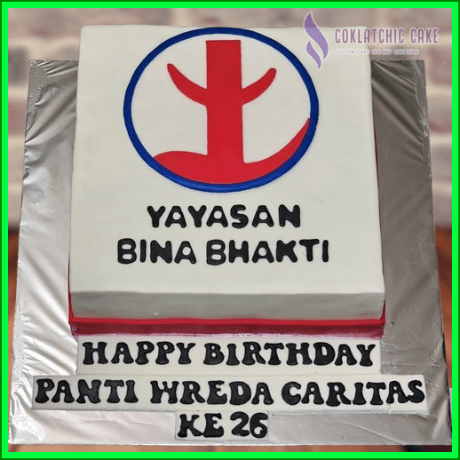 Birthday Cake dengan tema Logo Yayasan, model tersebut mulai ukuran 24 cm , daftar harga kue ulang tahun https://coklatchiccake.com/daftar-harga-2