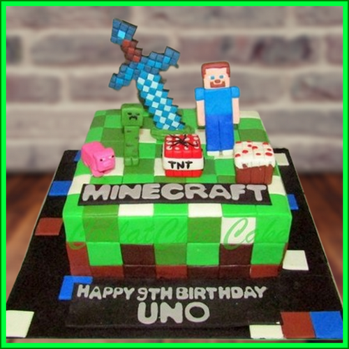 Birthday Cake dengan tema Minecraft, model tersebut mulai ukuran 15 cm, daftar harga kue ulang tahun https://coklatchiccake.com/daftar-harga-2