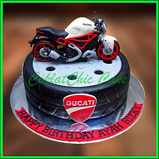 Birthday Cake dengan tema Motor Ducati, model tersebut mulai ukuran 24 cm, daftar harga kue ulang tahun https://coklatchiccake.com/daftar-harga-2