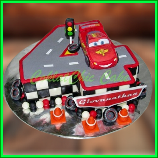 Birthday Cake angka 4 dengan tema Lightning McQueen Disney Cars, model tersebut mulai ukuran 20 cm, daftar harga kue ulang tahun https://coklatchiccake.com/daftar-harga-2