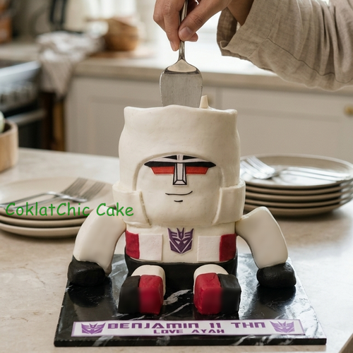 Siapa bilang Decepticon nggak bisa manis? Kali ini, pemimpin Transformers hadir dalam bentuk 3D cake yang super detail untuk merayakan hari spesial Benjamin yang ke-11! 🥳