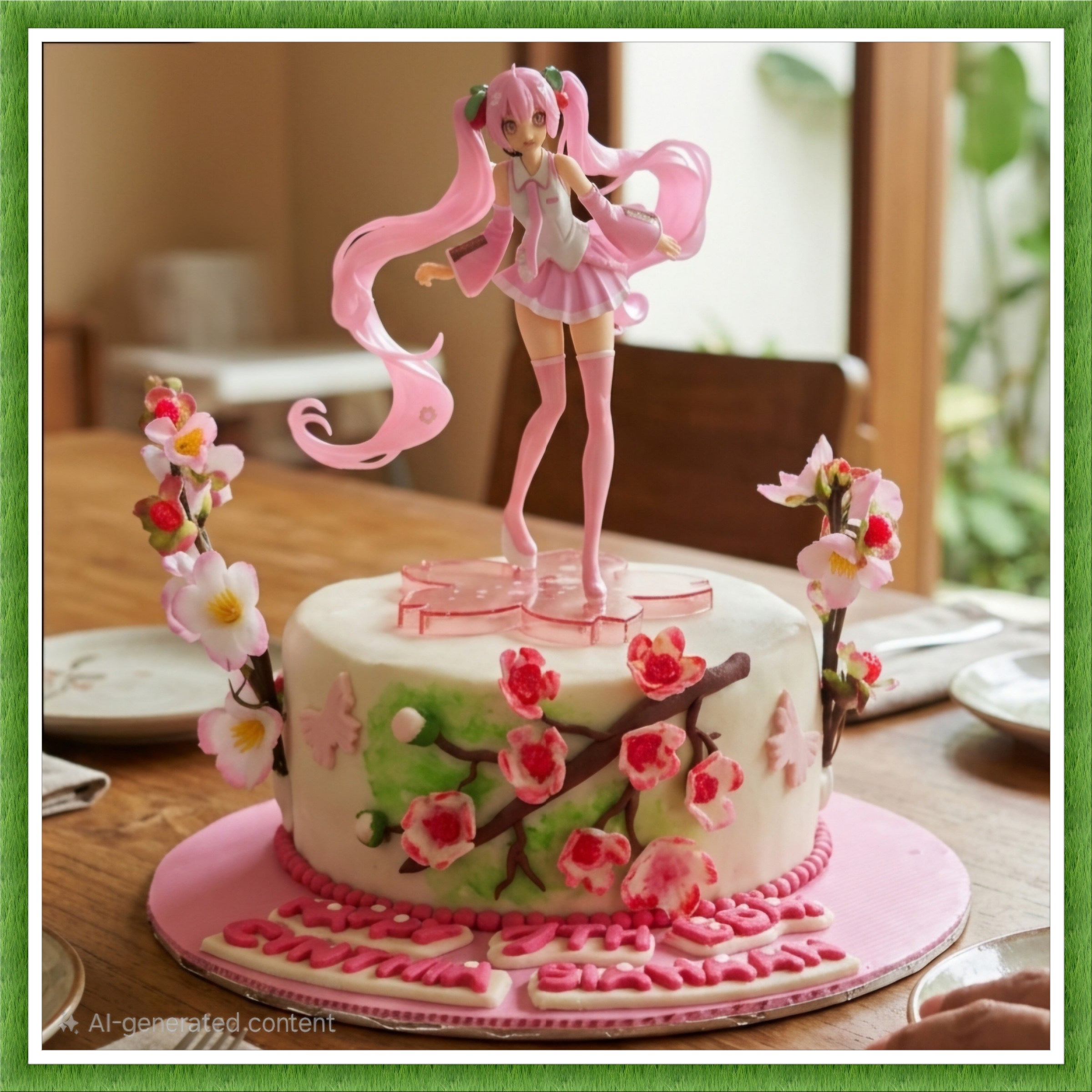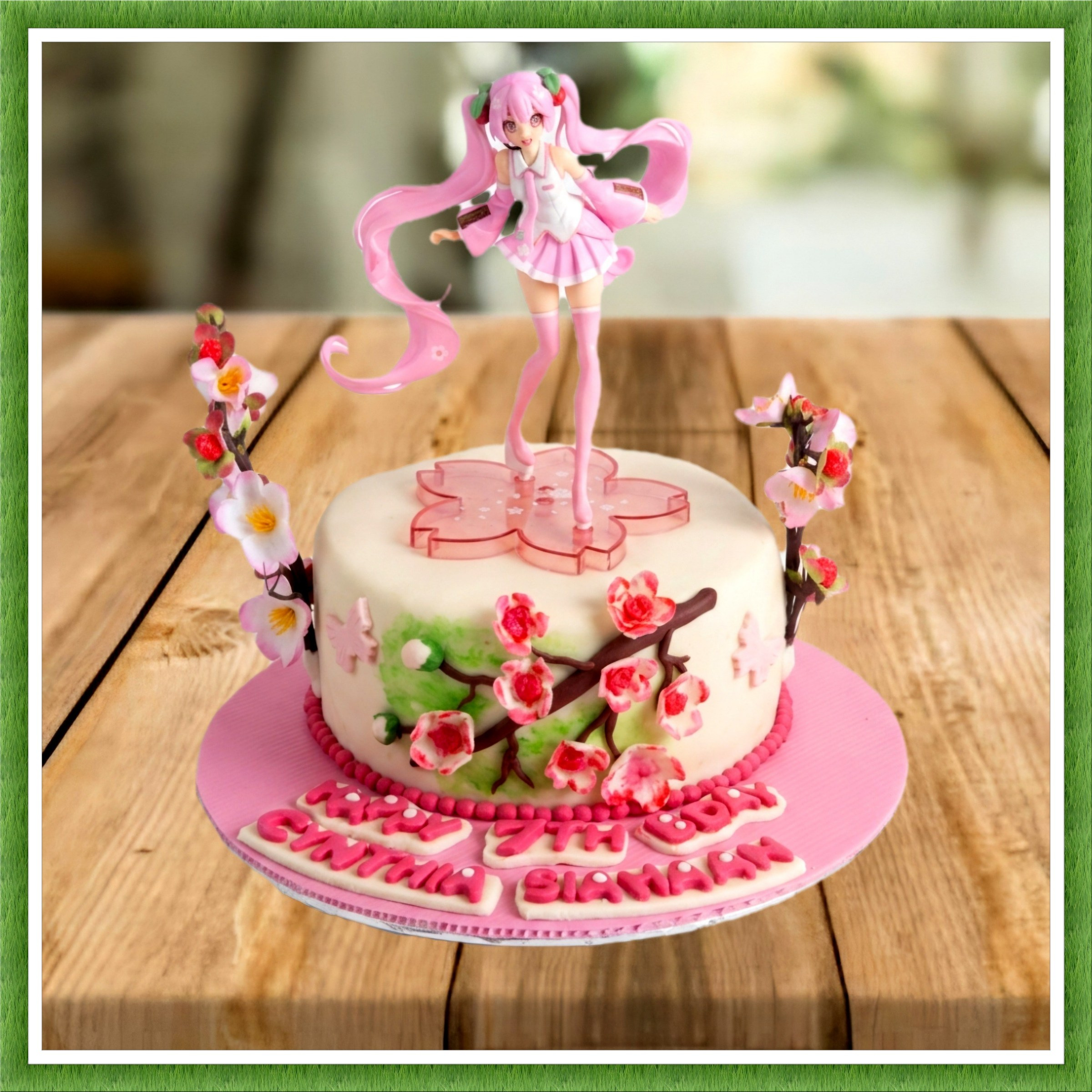 “Hadir dengan sentuhan sakura yang lembut, cake Hatsune Miku Sakura ini siap bikin momen ulang tahun makin kawaii dan unforgettable! ![]()