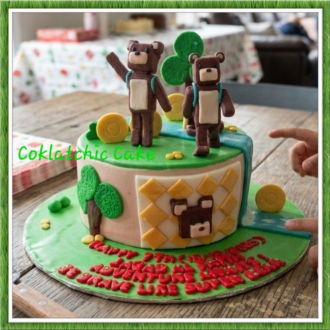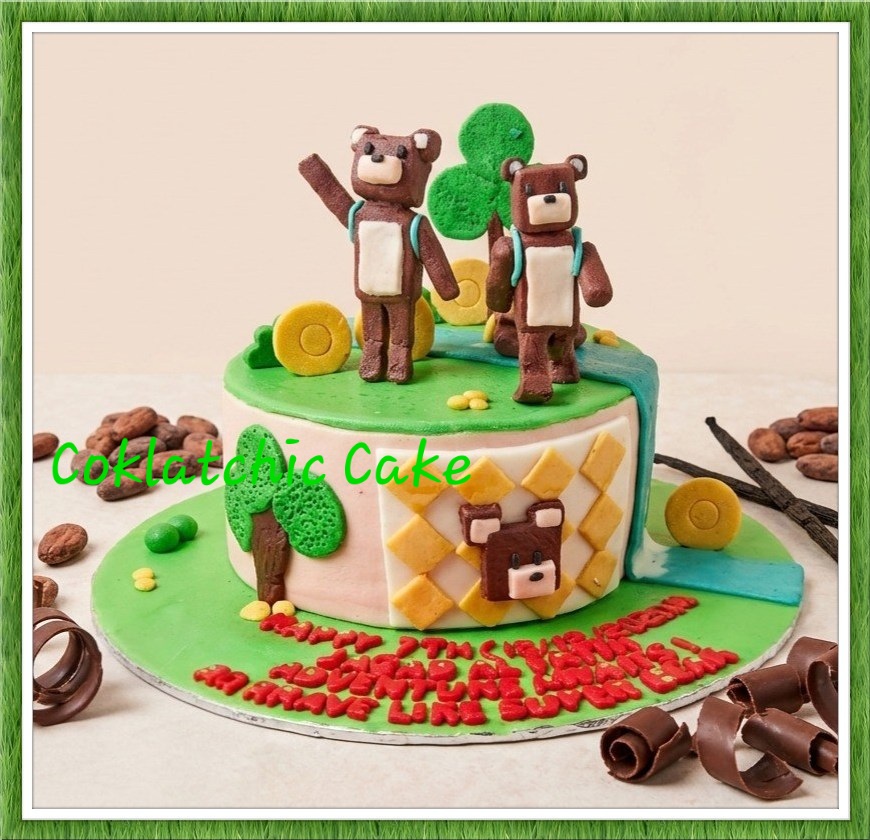 Dari hutan kecil sampai karakter beruang yang adorable—setiap sisi cake ini penuh cerita manis ✨ Cocok banget untuk ulang tahun si kecil atau pecinta tema nature & adventure!